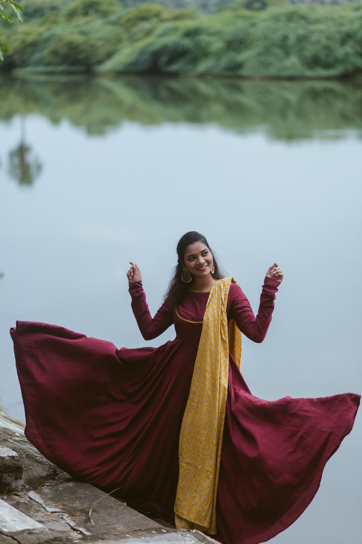 Casual semi festive dress with gota work on yoke paired with dupatta with gota work on end. No Lining