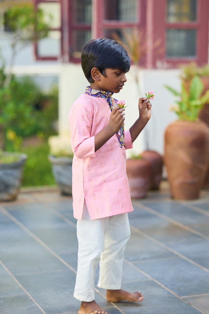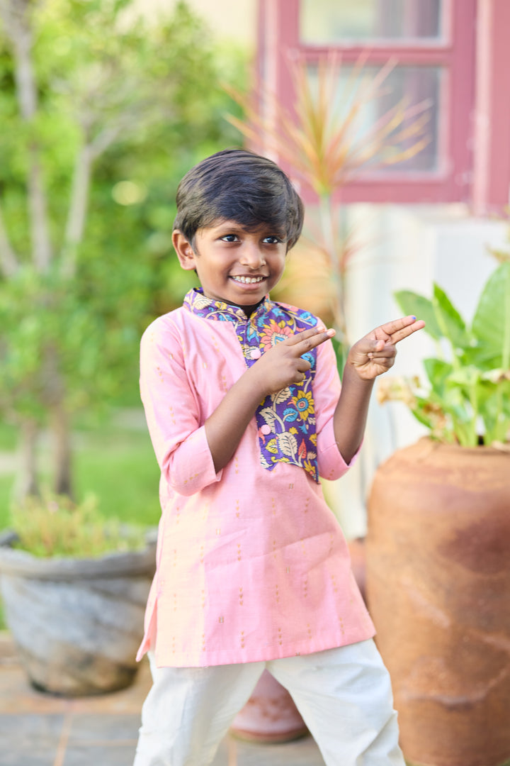 Cotton slub fabric as Kurti with cotton slub pant. Tusser patch in the Kurta makes it elegant.